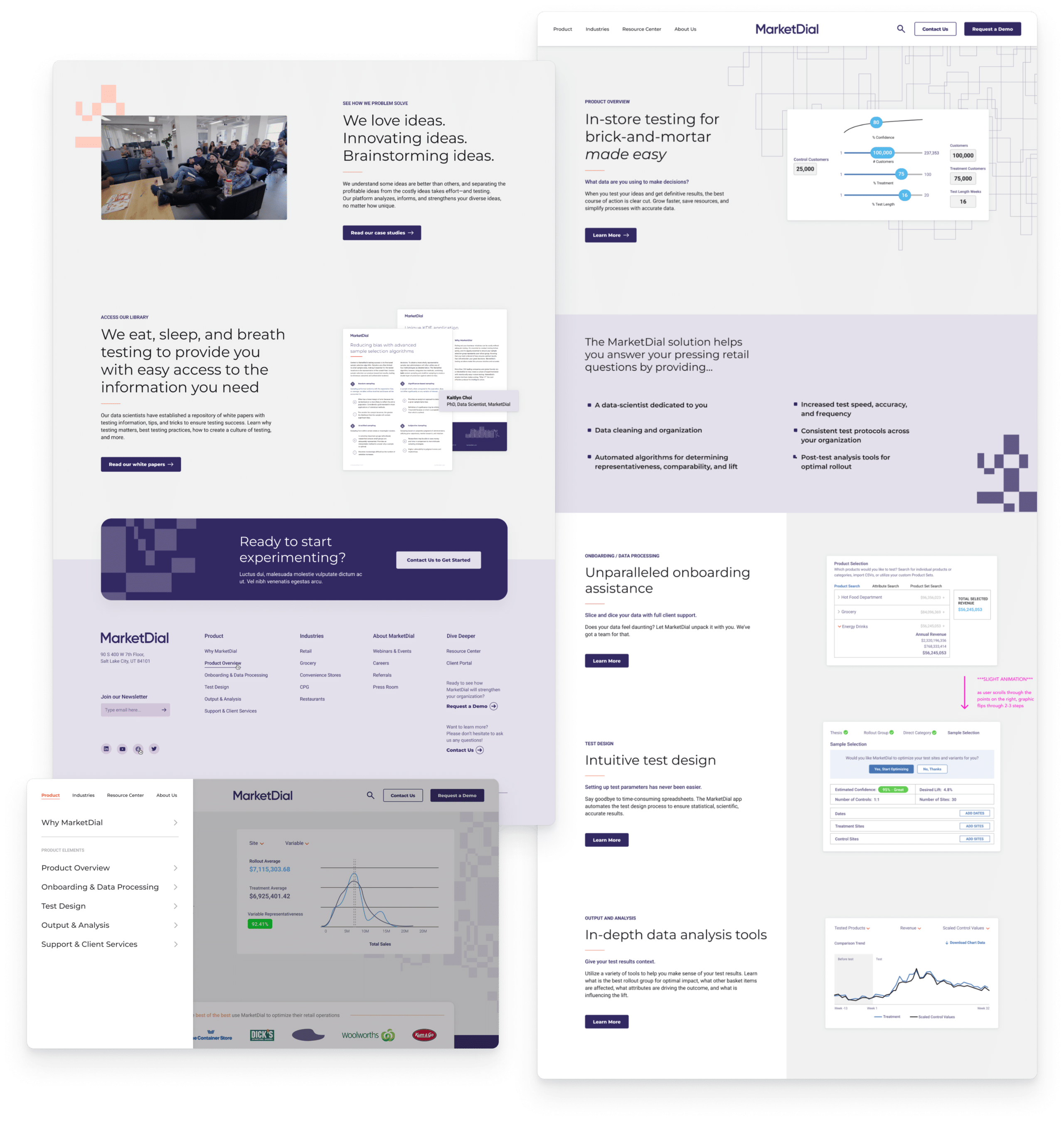 As a UX Designer for Anchor & Alpine, I had the privilege of working with MarketDial, a tech company that specializes in data-driven testing software and services for brick-and-mortar businesses in various industries, including grocery, retail, restaurants, and convenience stores. Their mission is to revolutionize traditional in-store pricing and promotion models with data-driven, scientific approaches. My journey with MarketDial began in 2021 when they partnered with Anchor & Alpine to elevate their user experience with a comprehensive two-year product UX/UI project, which later expanded to encompass a new custom website design. My role evolved from Lead UX/UI Designer on the product to Lead UX Designer on their website project. Over this time, I overhauled two significant product features and led our team in creating a modern website that has significantly enhanced MarketDial’s image and demand generation.