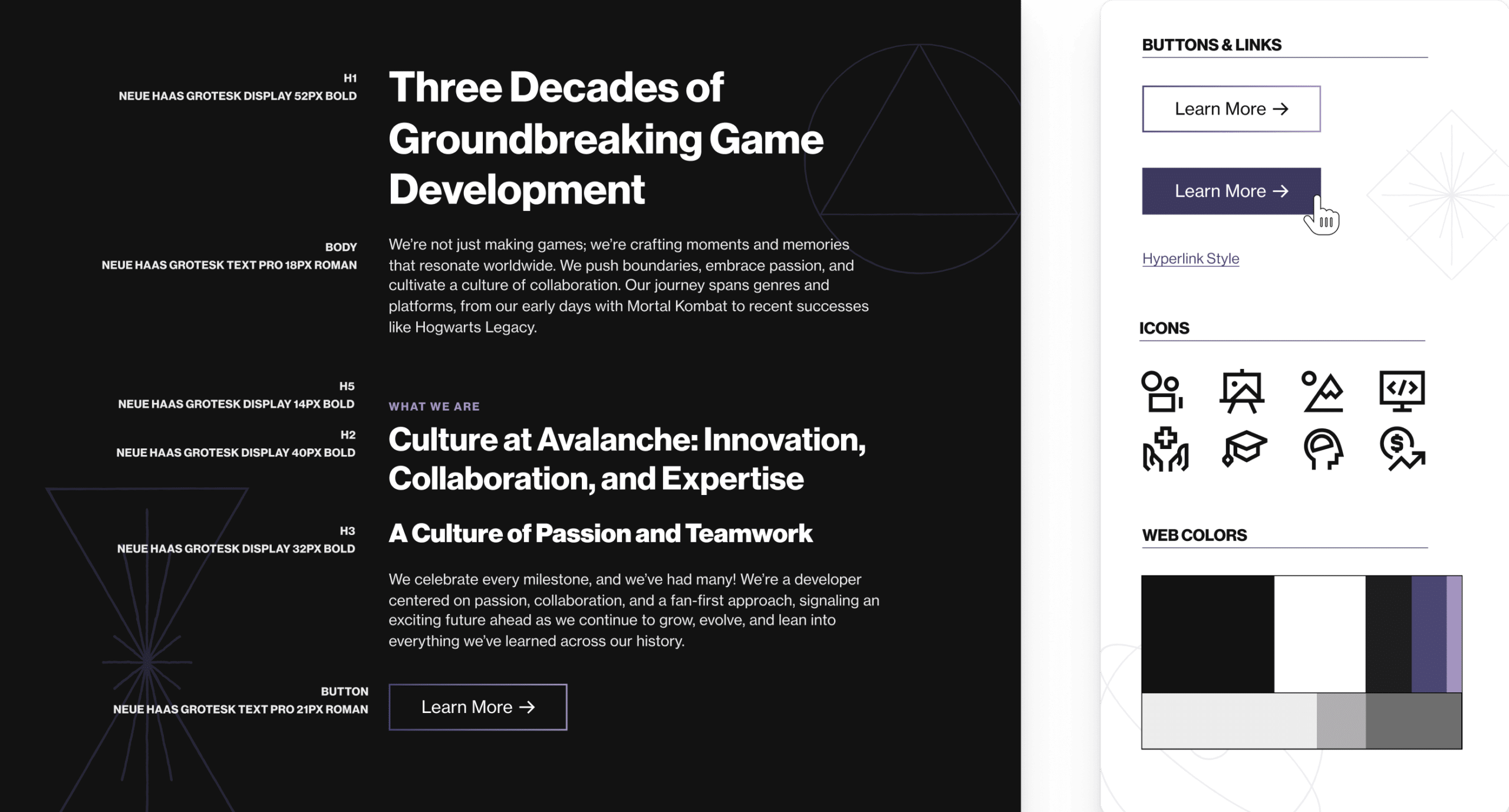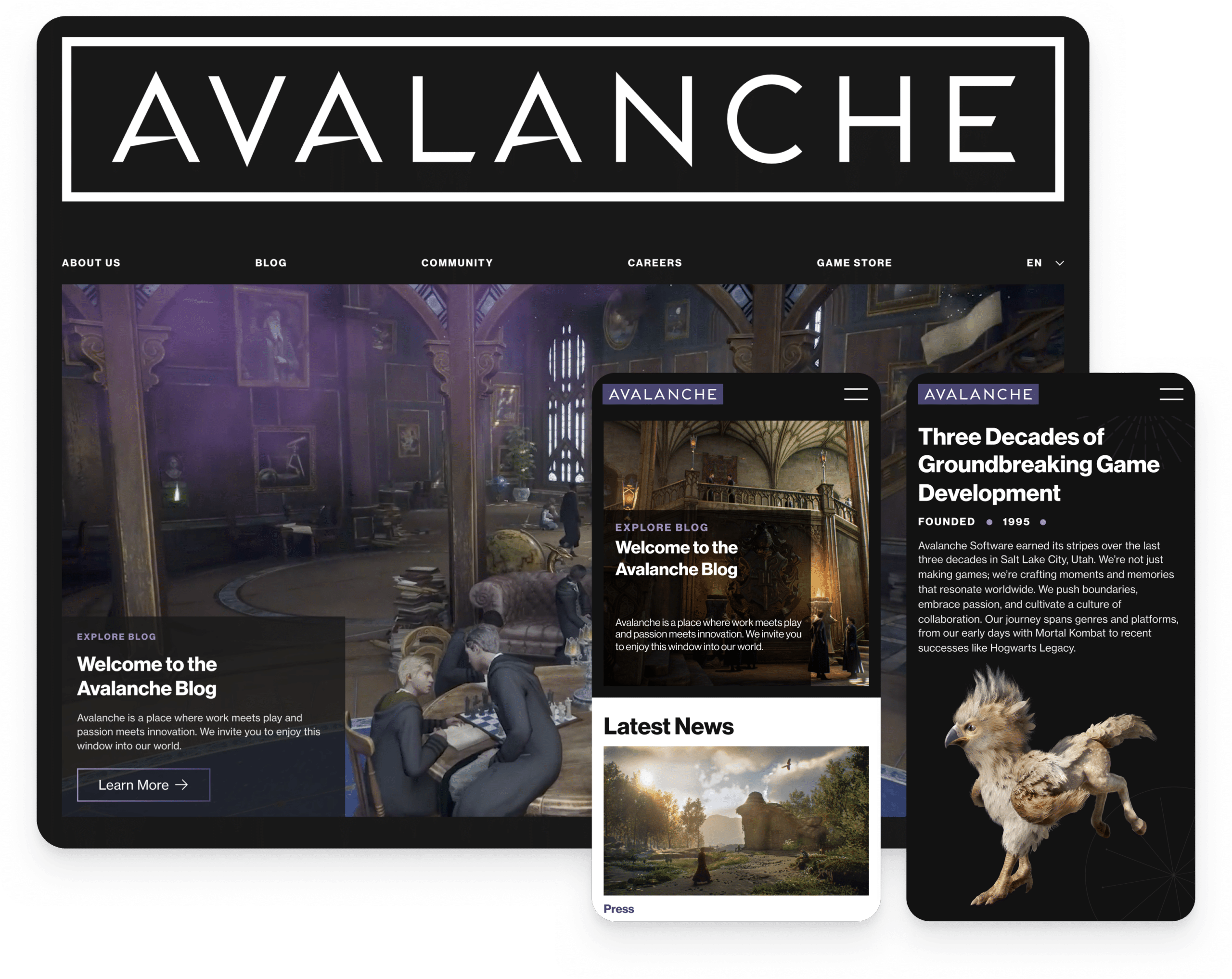 While working as a UX Designer at Anchor & Alpine, I had the opportunity to lead the design of Avalanche Software’s new website. Known for Hogwarts Legacy and decades of groundbreaking games, Avalanche wanted a site that captured their creative spirit, showcased their work, and connected with their vibrant community. Collaborating with my team, including two other designers, and working closely with Avalanche’s marketing team and art director, we created a site that reflects who they are as a studio.